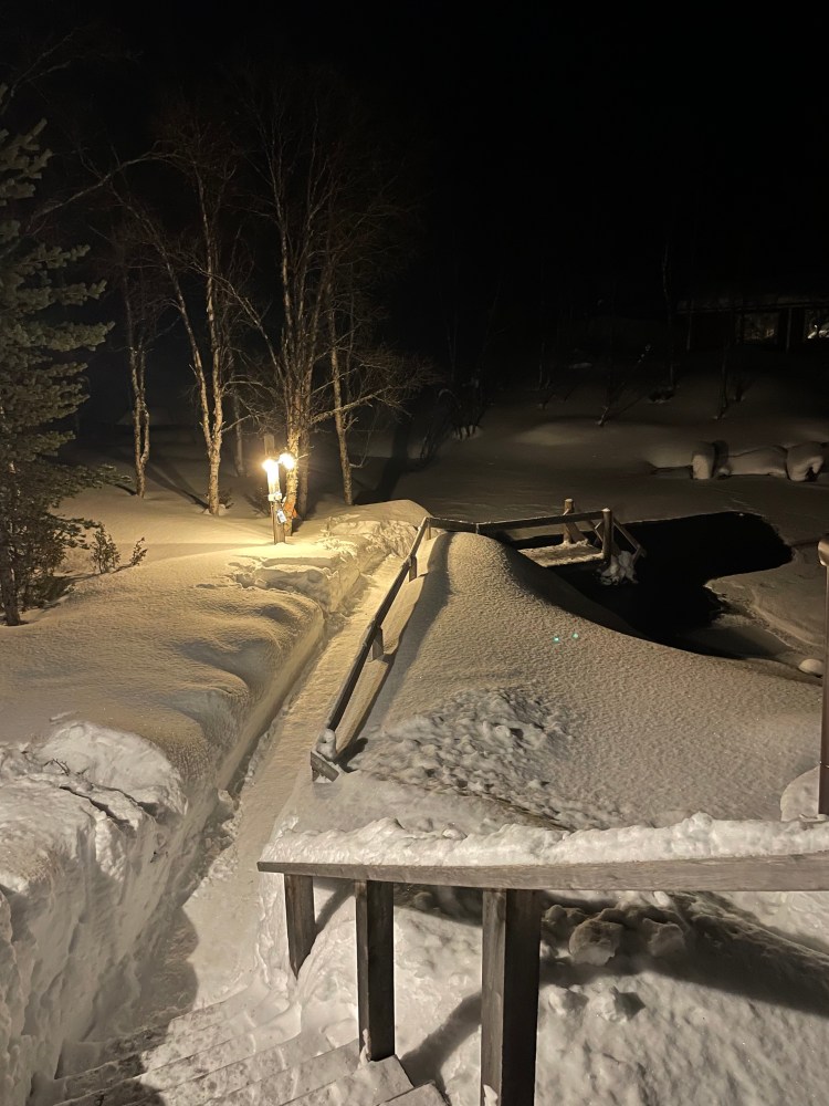 Illaksi olimme varanneet yksityisen saunavuoron ja avannon Laanilan kievarista. Hiihdon jälkeen oli kyllä ihana rentoutua 2 tuntia saunan ja avannon muodossa. Laanilan kievarilta sai myös ruokaa ja päätimme jäädä saunan jälkeen syömään. Ruoka oli todella hyvää ja viinilista oli yksi laajimmista mitä olen Suomessa nähnyt. Iso suositus Laanilan kievarille!