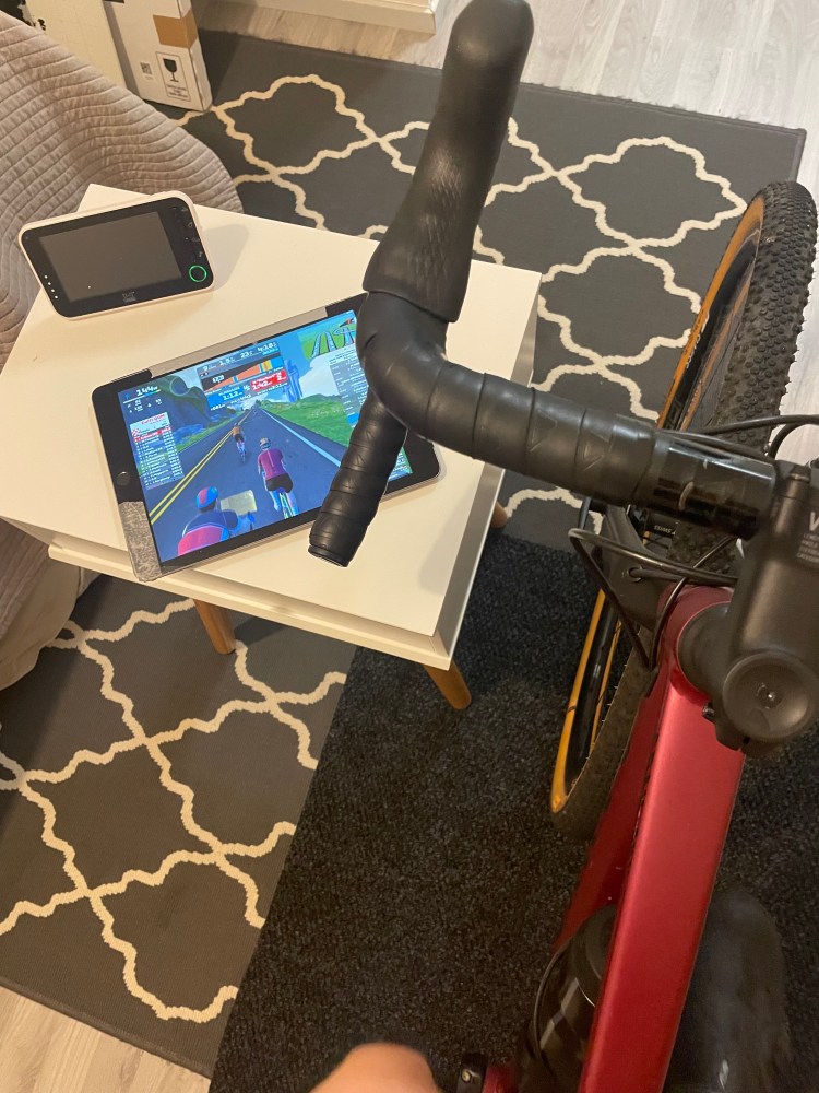 Älytrainerin lisäksi Zwift on ollut oman kotitreenamiseni mullistava hankinta. Zwift on pelillistetty niin hyvin, että minun no suorastaan pakko ajaa välillä ihan vain pisteiden tai haasteiden takia. Zwiftin erilaiset maastot myös takaavat vaihtelevia maisemia ja haasteita vaikka vuoden jokaiselle päivälle. Zwiftistä löytyy kaiken mittaisia ja vaatimustasoltaan erilaisia reittejä. Olenkin ottanut tavaksi Oton vieraspelireissuilla polkea 15-20 minuutin ”erätauko”lenkin, eli otan jonkun lyhyen radan ja polkaisen sen jääkiekko-ottelun erätauolla. Tämmöinen madaltaa kynnystä treeniin ja lenkkiä voi aina jatkaa jos siltä tuntuu. Voisin jatkaa Zwiftin kehumista ja hehkuttamista, mutta veikkaan että pointtini tuli jo selväksi 😅