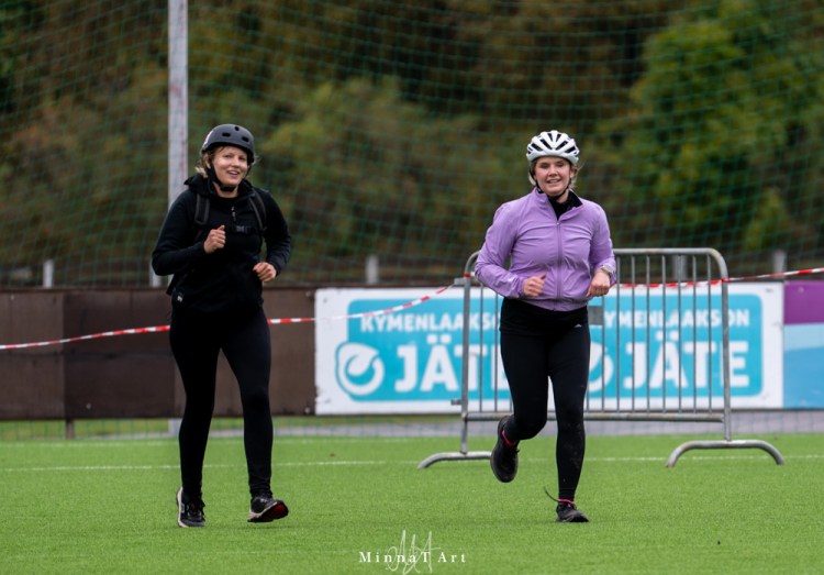 Lopulta pääsimme maaliin ajassa 3 h 29 min, 51 minuuttia kärjen takana. Tämä on mielestäni todella hyvä suoritus kahdelta ensikertalaiselta, jotka vielä lähtivät ihan soitellen sotaan ilman kunnon varusteita tai valmistautumista! Sijoituksemme oli lopulta 12./26, joka yllätti meidät, sillä emme viimeisellä juoksuosuudella nähneet enää kun yhden parin meidän perässä, ja olimme varmoja että taistelemme toisiksi viimeistä sijasta. Maalissa meitä odottikin yllätys että radalla onkin vielä yli puolet sarjamme kisaajista! Ylitimme siis omat odotuksemme ja tästähän vaan nälkä kasvoi seuraavaa vuotta varten. Uskaltaisiko sitä jo sitten osallistua siihen haastavampaan sarjaan? 😜